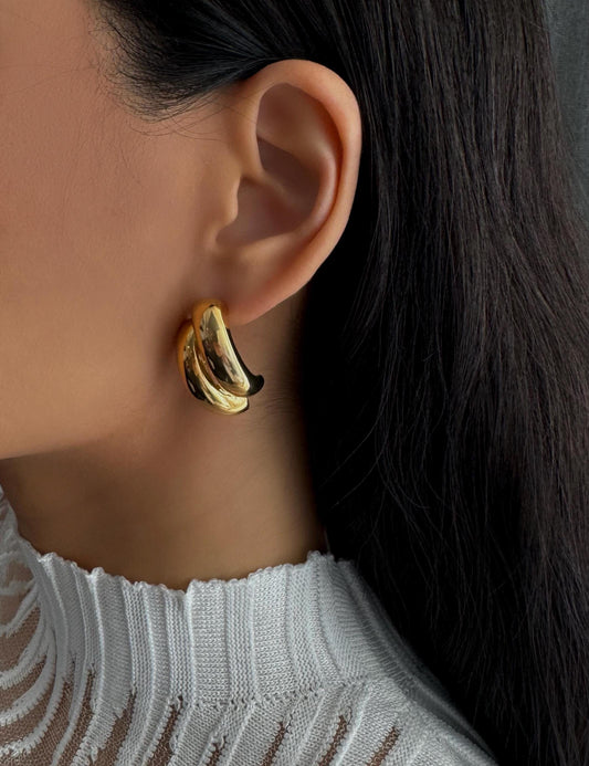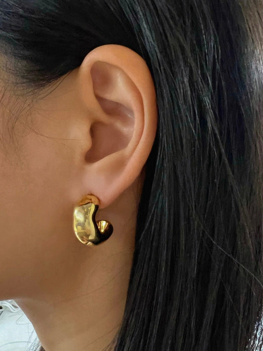 IRREGULAR WAVY CHUNKY GOLD EARRINGS