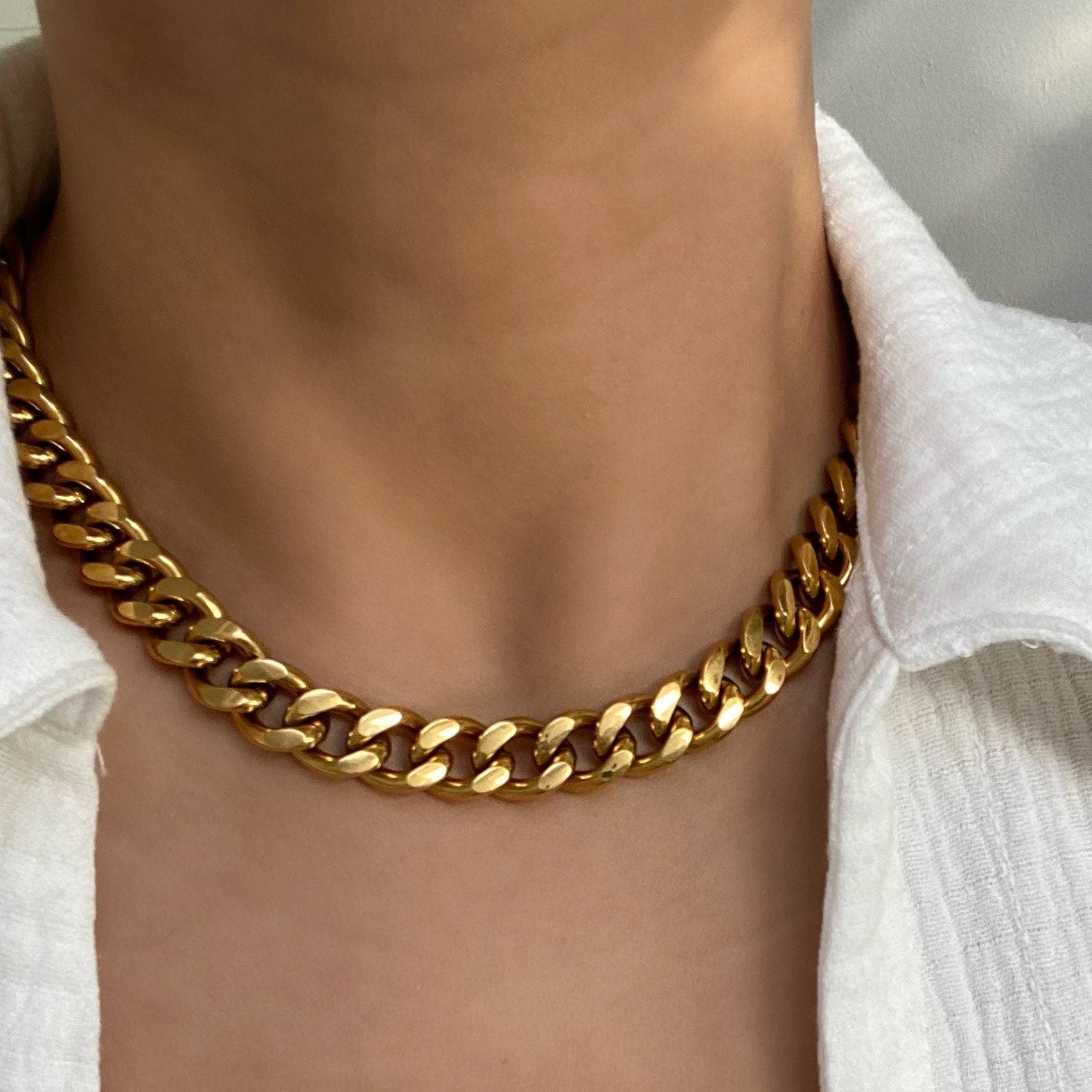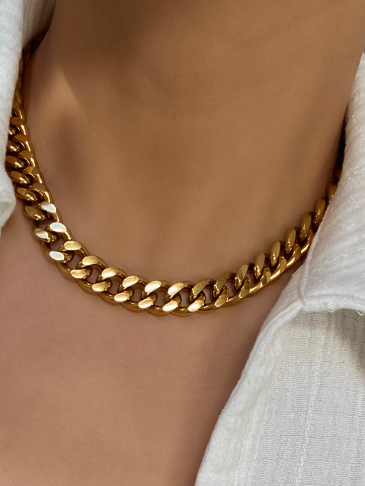 Enhance your everyday outfits with our timeless, waterproof 18K Gold Filled Chunky Miami Cuban Chain Necklace. This thick, medium 12mm chain is a classic statement piece with a modern bold twist. The perfect gift idea for any woman looking to elevate her personal style and add a minimalist staple jewelry in her closet.